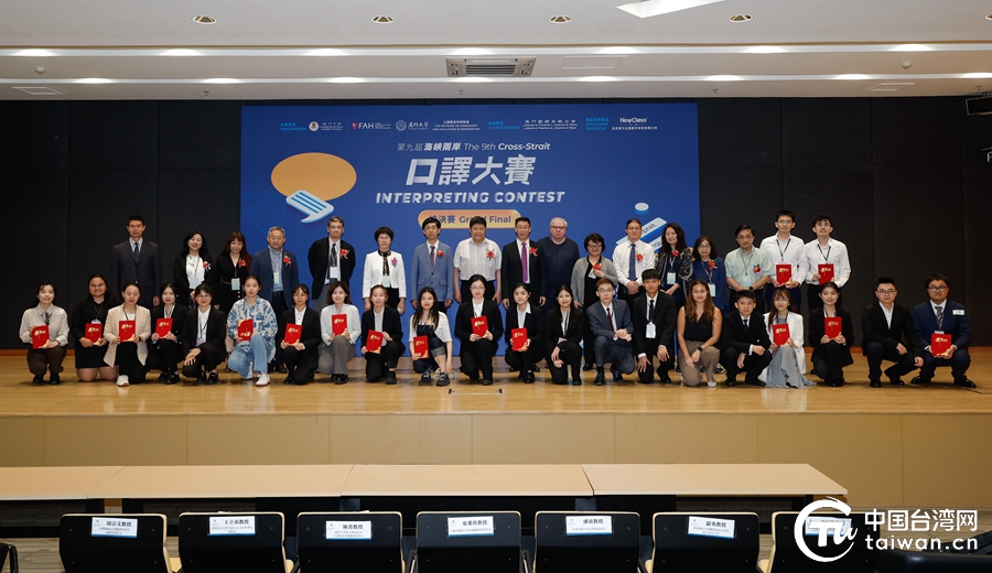 圖為第九屆海峽兩岸口譯大賽參賽學(xué)生與指導(dǎo)老師等合影。(中國臺(tái)灣網(wǎng) 發(fā))