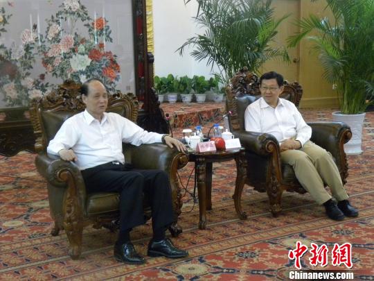 海峽兩岸關系協會會長陳德銘17日在江蘇昆山會見了臺灣;鶗麻L林中森參訪團一行!↑S瑩 攝
